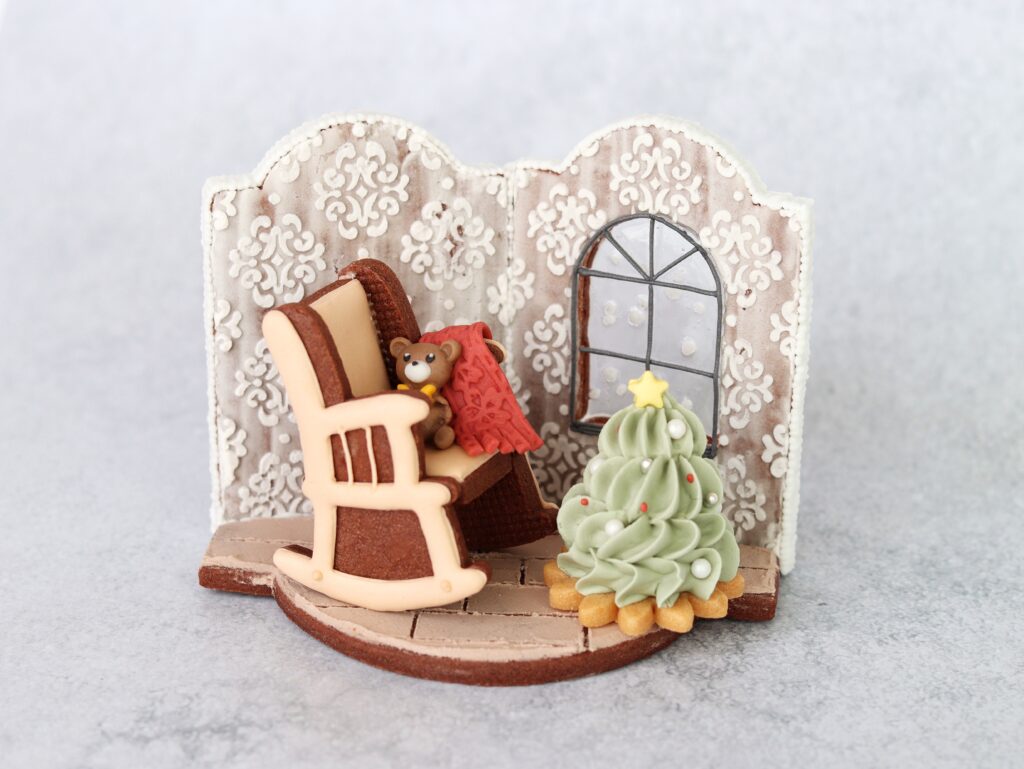 立体のお部屋に、3Dクッキーを配置することで、より奥行きのある空間に♡